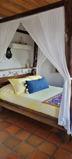 Contamos con jacuzzi para que puedas darte un baño relajante, mesa de billar para que puedas desafiar a tus amigos, y una hermosa quebrada donde podrás disfrutar de la naturaleza. Además, podrás hacer una barbacoa y jugar juegos de mesa con tu familia y amigos. También tenemos zonas de descanso con hamacas y tumbonas para que puedas relajarte y disfrutar del paisaje tomando un café. Y si lo que buscas es un espacio para leer o hacer yoga, también lo tenemos.
